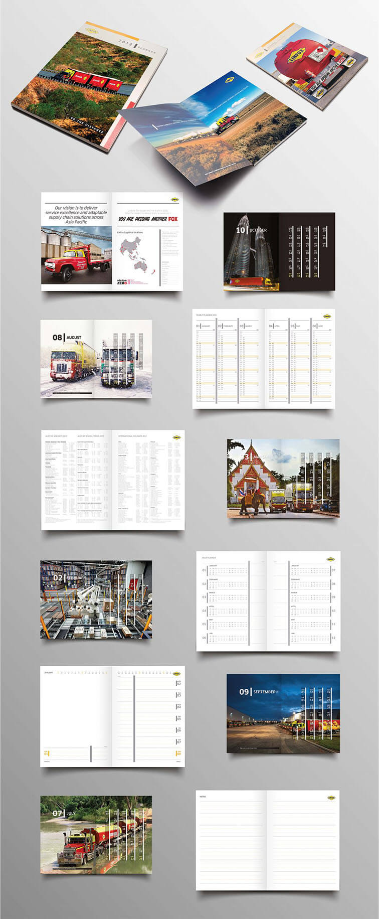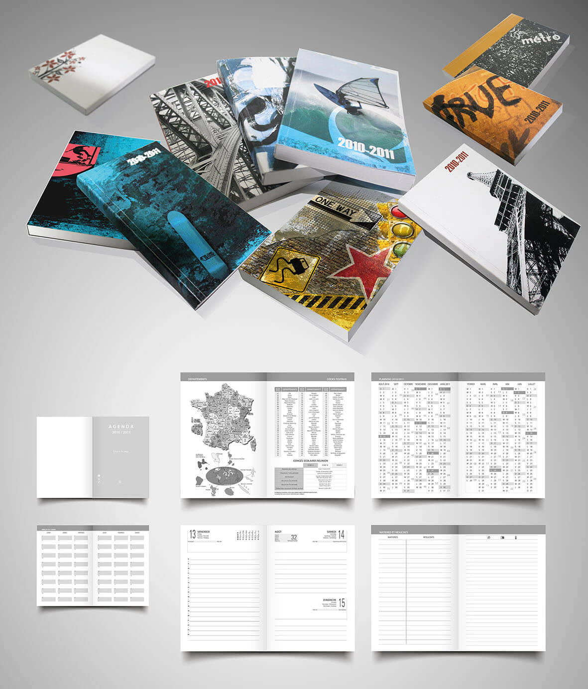 Dated programmes mostly consist of diaries, well-designed pagination system for overall user’s experience. Well thought cover materials, printed covers for the look and feel of the whole process. Often took place in different stages of development. From initial brainstorming of ideas, design preparation, merchandise and packaging to the finish products.